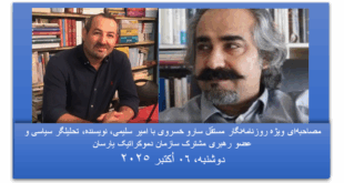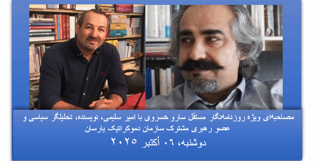 یارسانمدیا دوشنبه، ٠٦ اُكتبر ۲۰۲۵ مصاحبهای ویژە روزنامهنگار مستقل سارو خسروی با امیر سلیمی نویسندە، تحلیلگر سیاسی و عضو رهبری مشترک سازمان دموکراتیک یارسان مقدمە روزنامەنگار: بسیاری از مردم ...