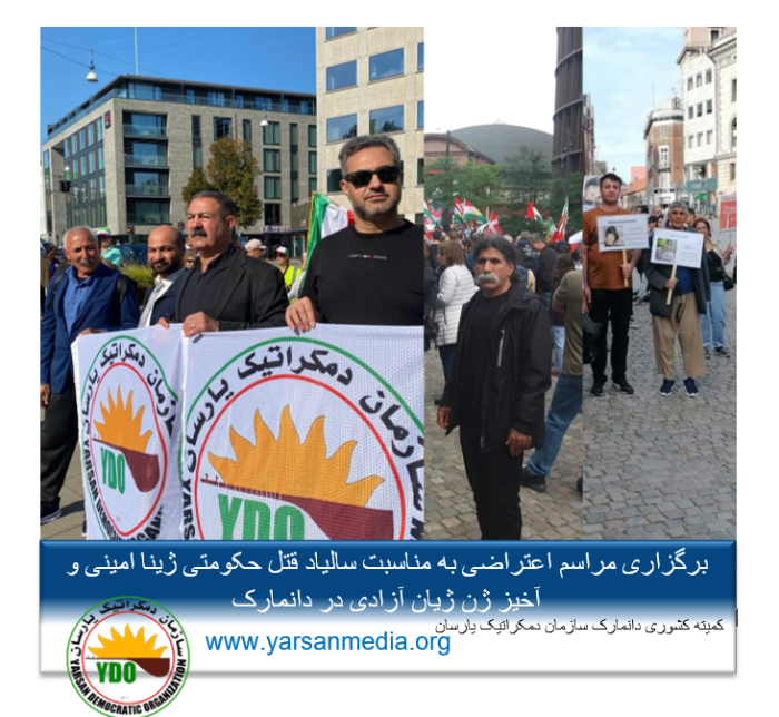 حضور یاران و دوستداران سازمان دمکراتیک یارسان کمیته کشوری دانمارک، همراه با سایر ایرانیان در تجمع چشمگیر بود.