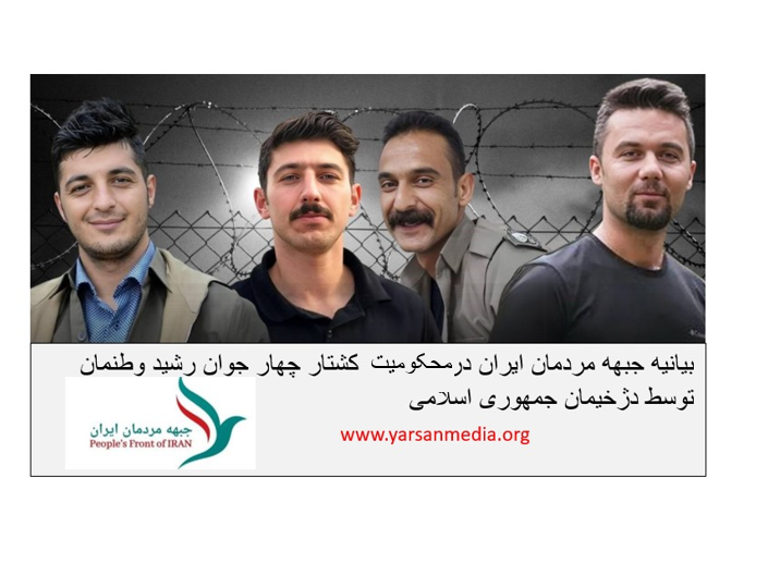 جمهوری ننگین اسلامی از اعدامها بعنوان ابزار جهت ترساندن جوانان استفاده میکند، اما باید بگوییم که خود به شدت در ترس و وحشت از خروش دوباره جوانان است. ماشین سرکوب این رژیم، قرون وسطایی هیچ مرزی را نمیشناسند، چرا، چون متاسفانە هم سازمان ملل و هم کشورهای بنام دمکراتیک در دنیا چشمانشان را در مقابل این قاتلان بستەاند و این نوع سکوت باعث افسار گسیختگی این جانیان دوران شدە است. مردمان سرزمین ایران بیهودە نبایستی منتظر هیچکس و هیچ کشوری باشند، بلکە این خودشان هستند کە بە سرنوشت و آیندە خویش رقم خواهند زد و این رژم سراپا فاسد را بە زبالهدان تاریخ خواهند فرستاد. جبهە مردمان ایران متشکل از سازمانهای زیر از آحاد ملت ایران میخواهند کە بە پا خیزند و در مقابل این رژم ددمنش قیام کنند، تا بیشتر از این خون جوانانمان ریختە نشود.