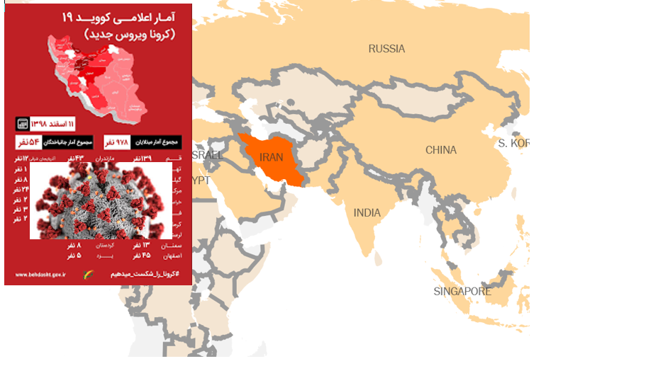 بنا به اعلام رسمی وزارت بهداشت جمهوری اسلامی تا کنون ۱۲۸۴ نفر بە علت گرفتار شدن بە این بیماری جان خود را از دست دادە و بیش از ۱۸ هزار بە آن مبتلا شدە اند. اما بە گفتە یک مقام وابسته بە سازمان بهداشت جهانی کە تازه از ایران برگشته است تلفات واقعی پنچ برابر آمار رسمی است کە از طرف مقامات جمهوری اسلامی اعلام میگردد. اخبار پخش شده در کانالهای مجازی و واکنش کشورهای مجاور نسبت ورود اتباع ایرانی بە خاک خود ادعاهای مقامات جمهوری اسلامی در مورد گسترش این بیماری کشنده و آمار و ارقام رسمی مرگ و میر ناشی از آن را بە آسانی زیر سوال میبرد.