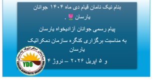 یارسانمدیا ٤ آپریل ٢٠٢٦ بنام نیک نامان قیام دی ماه ۱۴۰۴ جوانان یارسان🌷 با درود و احترام، جوانان آزادیخواه یارسان، برگزاری کنگره سازمان دمکراتیک یارسان در روزهای ...