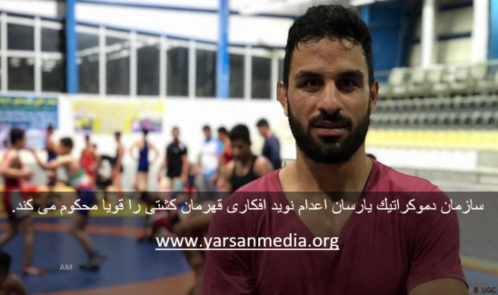 جمهورى اسلامى صبح امروز ٢٢ شهريور ٩٩ نويد افكارى قهرمان ملى كشتى را عليرغم فراخوانهاى بين المللى و تلاش نزديكان وى در جهت جلب رضايت “اولياء دم” او را در اوج ناباورى جهانى اعدام كرد.