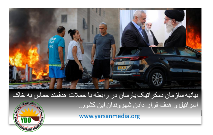 سازمان دمكراتيیک يارسان ضمن حمایت از قطعنامە ٢٤٢ سال ١٩٦٧شورای امنیت سازمان ملل و حقوق مسلم و طبیعی مردم فلسطین، شديدا حملاتی کە مردم بیگناە و غیر نظامی را هدف قرار دهد محكوم می کند و از سازمانهای حقوق بشری و از دولتهای دمكراتيک دنيا خواستار آن است كه سپاه تروريستی پاسداران انقلاب اسلامی ،کە پشتیبان اصلی این اقدامات آتش افروزانە است، را در لیست سازمانهای تروریستی قرار دهند.