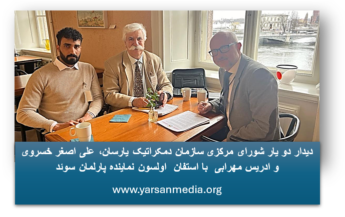 در تاریخ ۱۶ م آوریل ۲۰۲۴ ، هیاتی سیاسی متشکل از یاران علی اصغر خسروی و ادریس مهرابی با استفان اولسون نماینده حزب لیبرال محافظه کار در مجلس سوئد ملاقات داشتند.