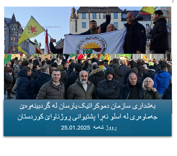 ڕووژ شەمە ڕێکەفت 25.01.2025 گردبینەوەێ فەراوانێک وەبەشداری کوردەکان نروژ لە اسلو وەڕێوە بریا. ئی گردبینەوەێ اعترازیە ئەڕا پشتیوانی “خۆبەڕێوەبەریی باکوور و ڕۆژھەڵاتی سووریا ” و محکوم کردن شەڕفروشی دەوڵەت ترکیە بی کە لە لاێەن احزابگەل کوردستان سوریە ، «ی پ گ، ی پ ژ و ه س د» وەڕێوە بریا. احزاب و ڕێکخراوگەل پارچەکانتر بەشدار بین.
